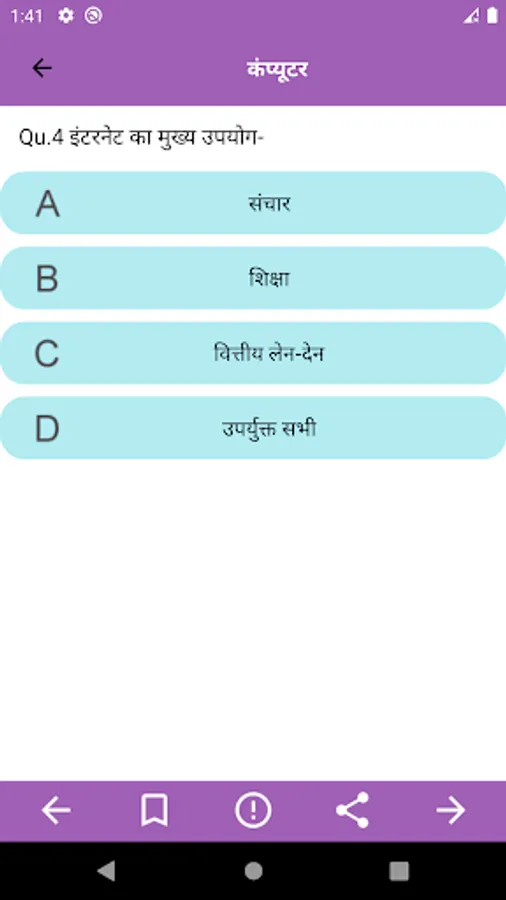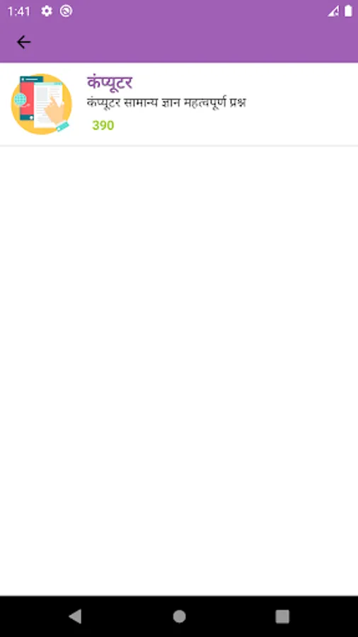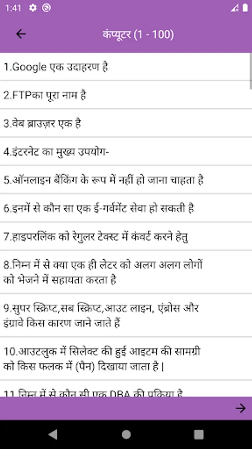 कंप्यूटर पर सामान्य ज्ञान प्रश्नोत्तरी सेट के प्रश्नों का संकलन किया गया है। यह आपको न सिर्फ प्रतियोगी परीक्षाओं जैसे आईएएस, पीएससी, एसएससी, रेलवे आदि में मददगार साबित होगा बल्कि शैक्षणिक परीक्षाओं में भी सहयोगी होगा । आशा है यह एप्प आपको पसंद आएगा।