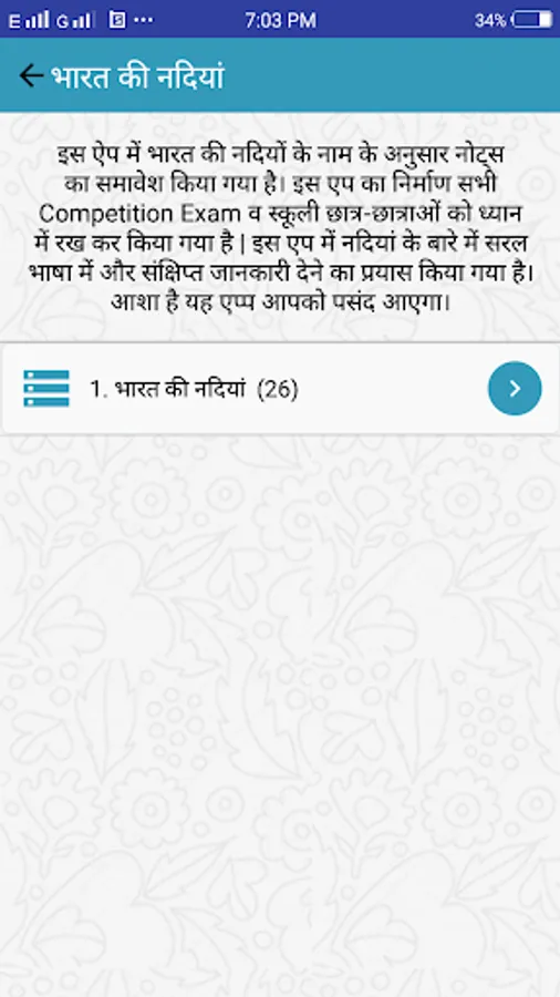 This app has detailed detail information about all the rivers in India, which will increase your general knowledge and will be beneficial for you in competitive examinations! Hope you like this app!
