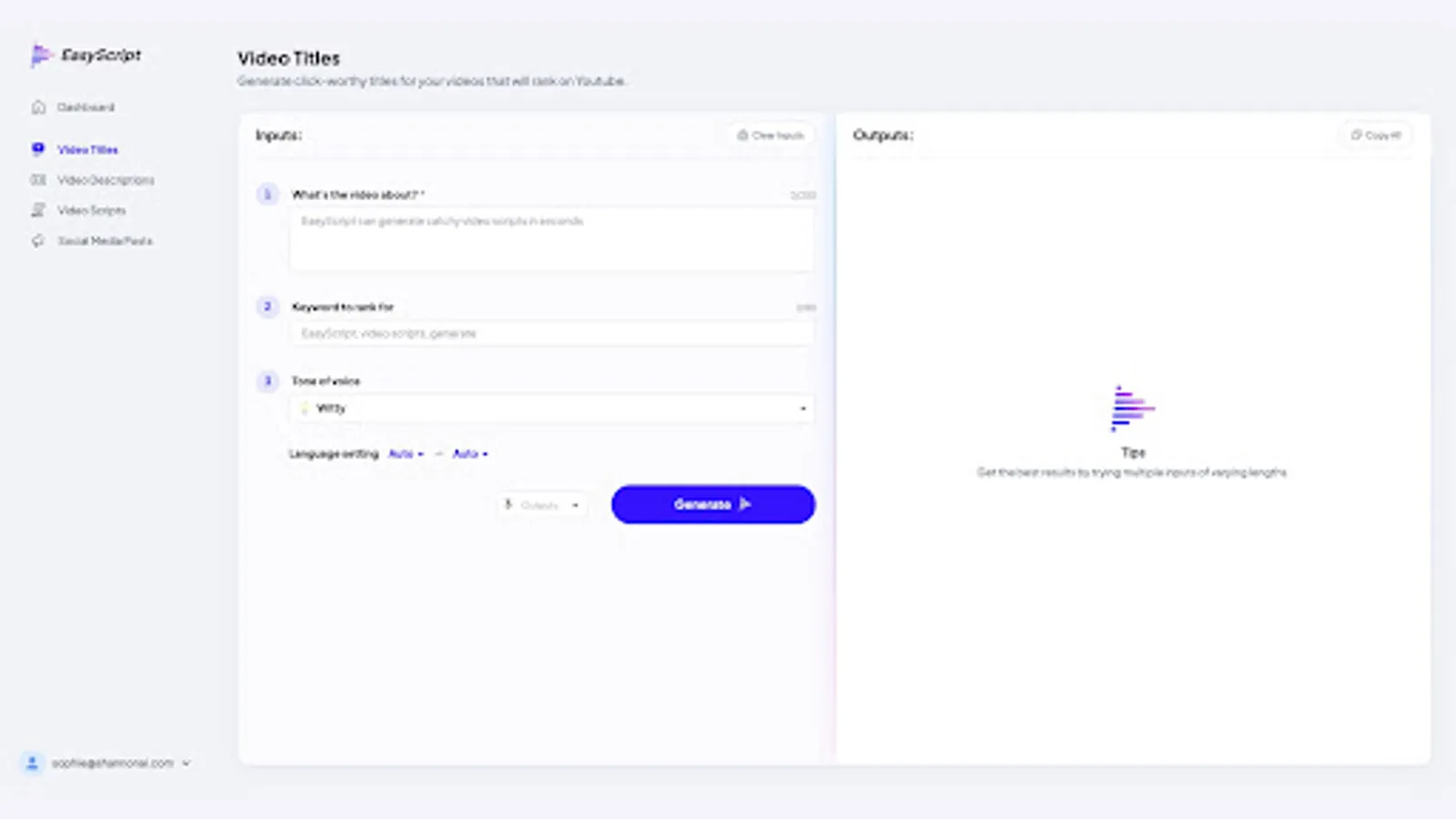 With EasyScript, you can easily create video scripts and marketing copy 10 times faster. EasyScript makes it easy to produce high-quality content without spending a lot of time on the writing process. EasyScript is the perfect tool for any marketer who wants to create great content quickly and easily.