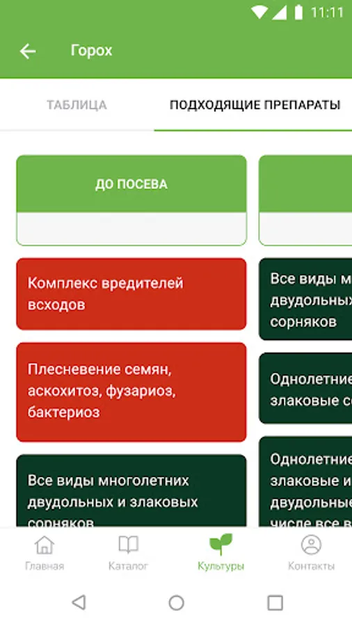 - Comprehensive protection programs for each crop - compiled in the form of tables, where the necessary preparations are selected according to the development phases.