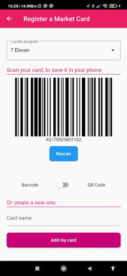 Keep all your loyalty cards in your phone! Get rid of the heavy wallet!