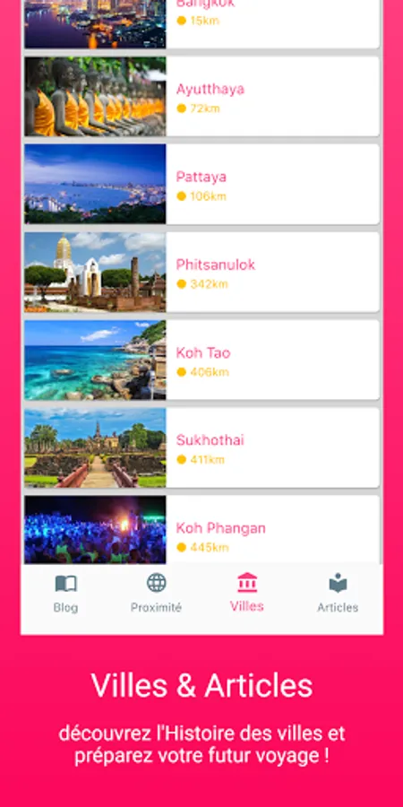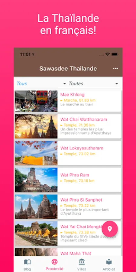 The main places to visit are geolocated and therefore appear according to the distance.