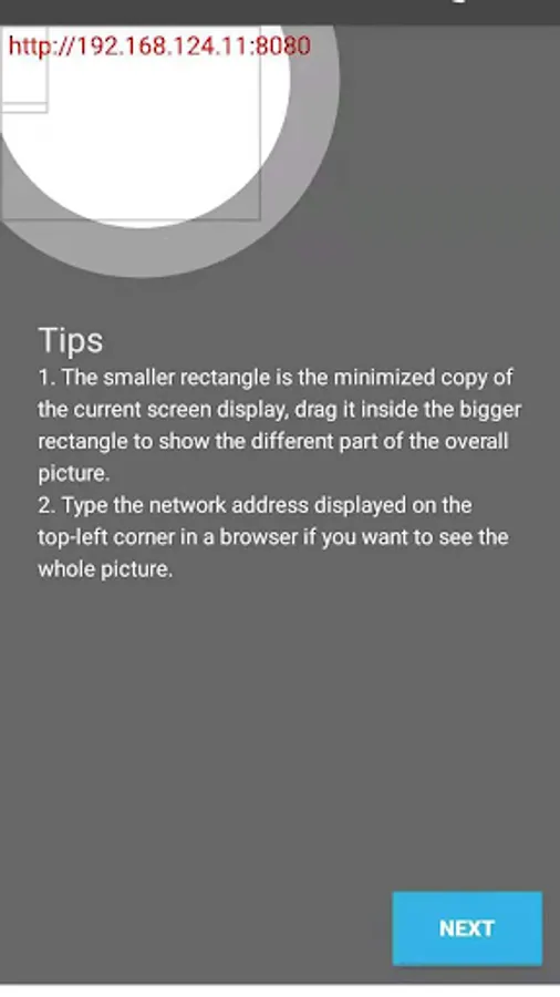 2. copy the address shown on the top left corner of the screen, and type it in a browser on a computer, both has to connect to a same wifi network so that they can communicate with each other.