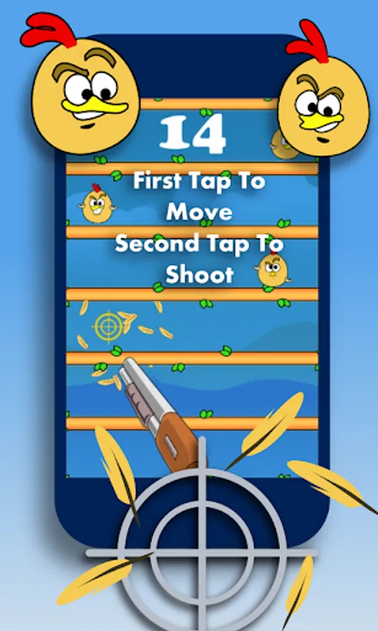 Game play: first TAP to move then when the shooter reaches the bird another more TAP to Shoot. Shoot as much as you can.