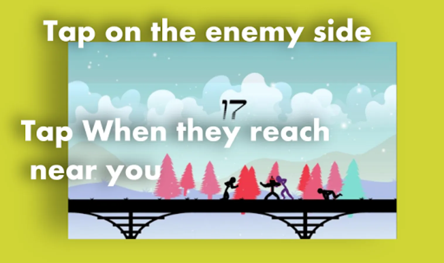 Controls: Wait for certain range then Tap on the sides(left or right) to defeat the enemies on that side. Tap fast for more Realistic Action.