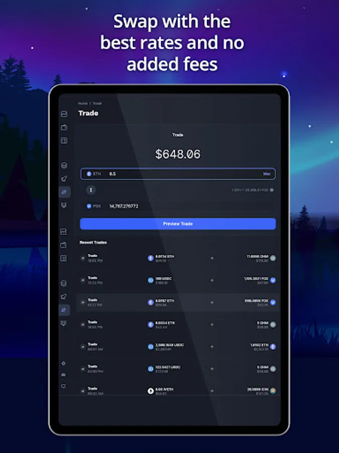 Say goodbye to complicated and limited exchanges! Swap into more than 5,800 different assets with just two taps. Wherever you are, you can swap your favorite assets with the best rates at any time一all with no added fees!