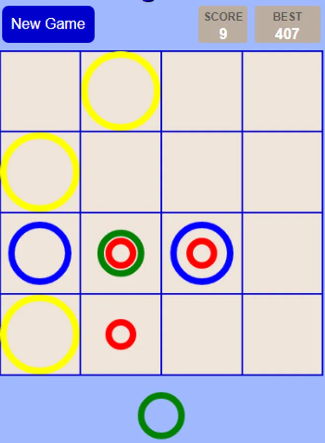 Drag a new ring from outside into the table. If a cell already has a ring or rings, you can add the new ring if it is larger than the existing ring or rings. You can re-drag the largest ring from one cell into another. If a cell contains all four sizes of rings, they all disappear and the cell becomes empty again.