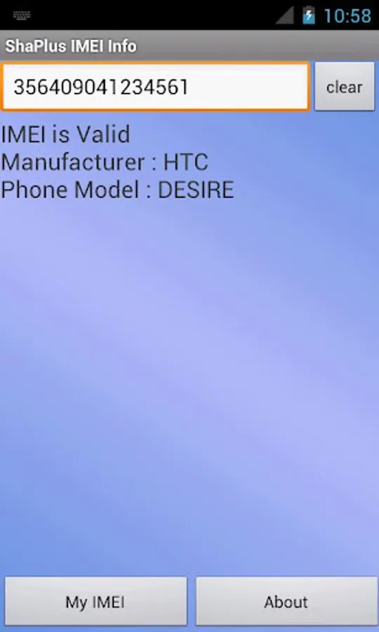 Note : This app may not be of use for general public. This is meant of people working with IMEI numbers like those in telecom or law enforcement agencies etc. This app has nothing to do with IMEI Tracking.