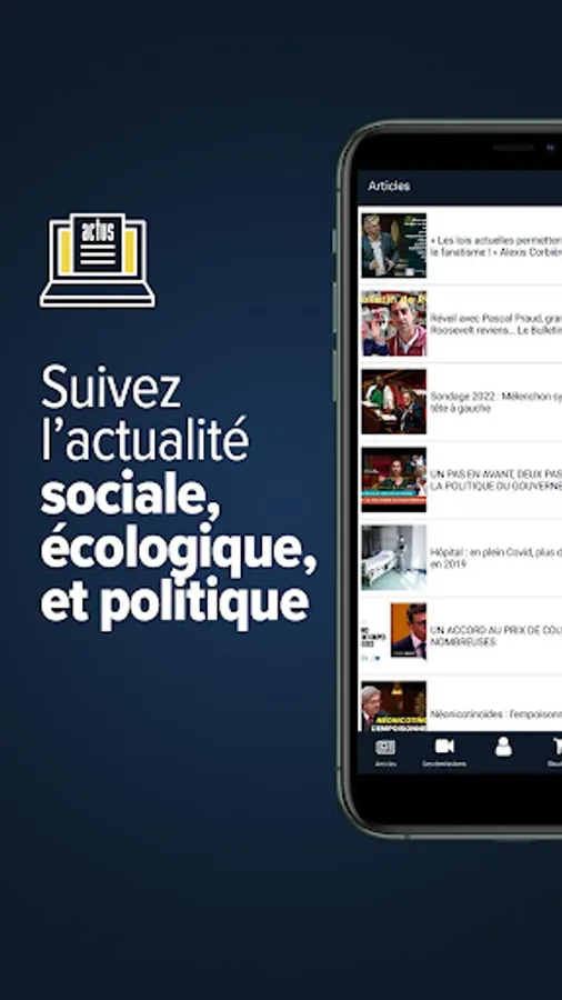 With the Insoumission application, quickly access the best of articles, shows and videos from the rebellious media universe: the linsoumission.fr website, a selection of articles from the Insoumission hebdo and the magazine Le Journal de l ' insubordination, Jean-Luc Mélenchon's Review of the Week, videos by editorial writers, Le Monde en commun, speeches and public meetings.