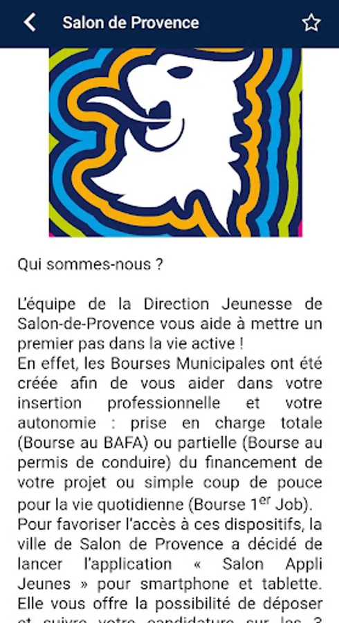 Salon App Young: download and install for free the new youth application of the city of Salon de Provence! To receive information or fill out your application online for the 3 municipal grants (driving license, BAFA, 1st Job), the new application young you book in a few clicks the essentials of your efforts, the progress of your file and allows you to stay connected to your city.