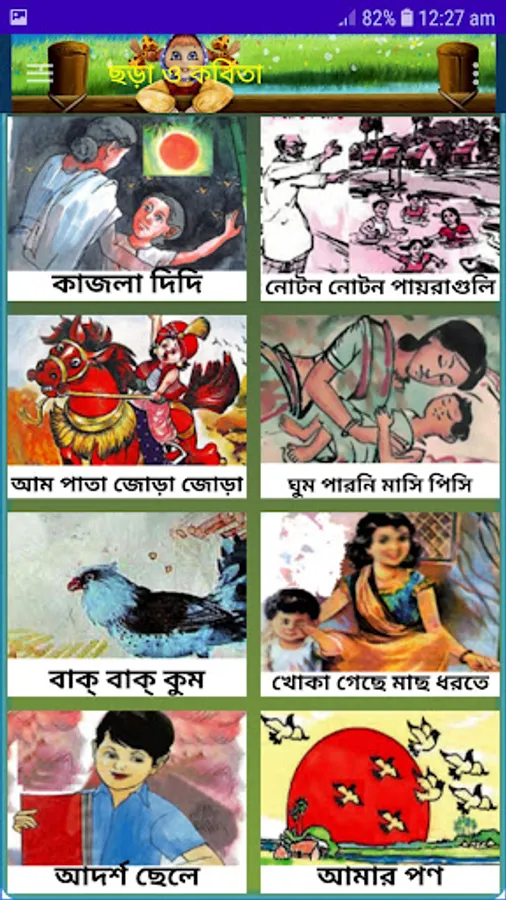 এই অ্যাপটিতে মজার মজার বাংলার সকল বাছাইকৃত জনপ্রিয় সোনামনিদের ছড়া ও কবিতা এবং গল্প, আপনার ছোট বাচ্চাকে এই এ্যাপটি ডাউনলোড করতে সাহায্য করুন।