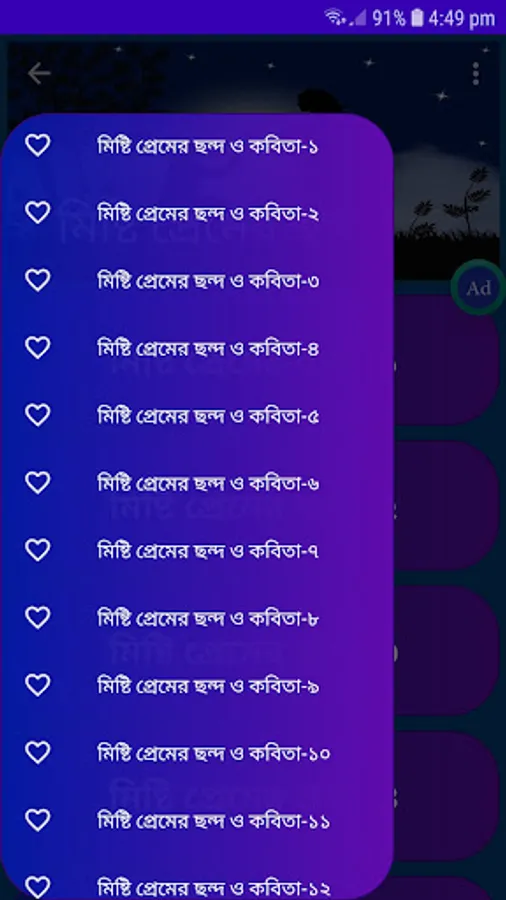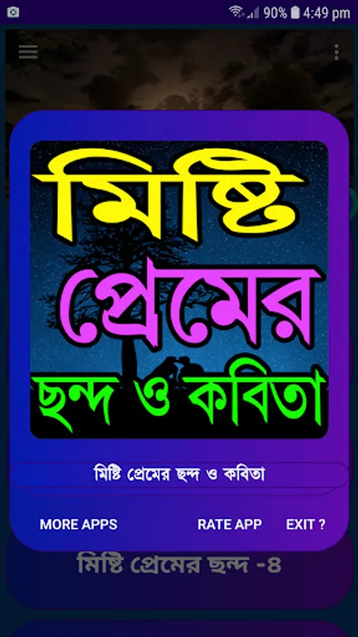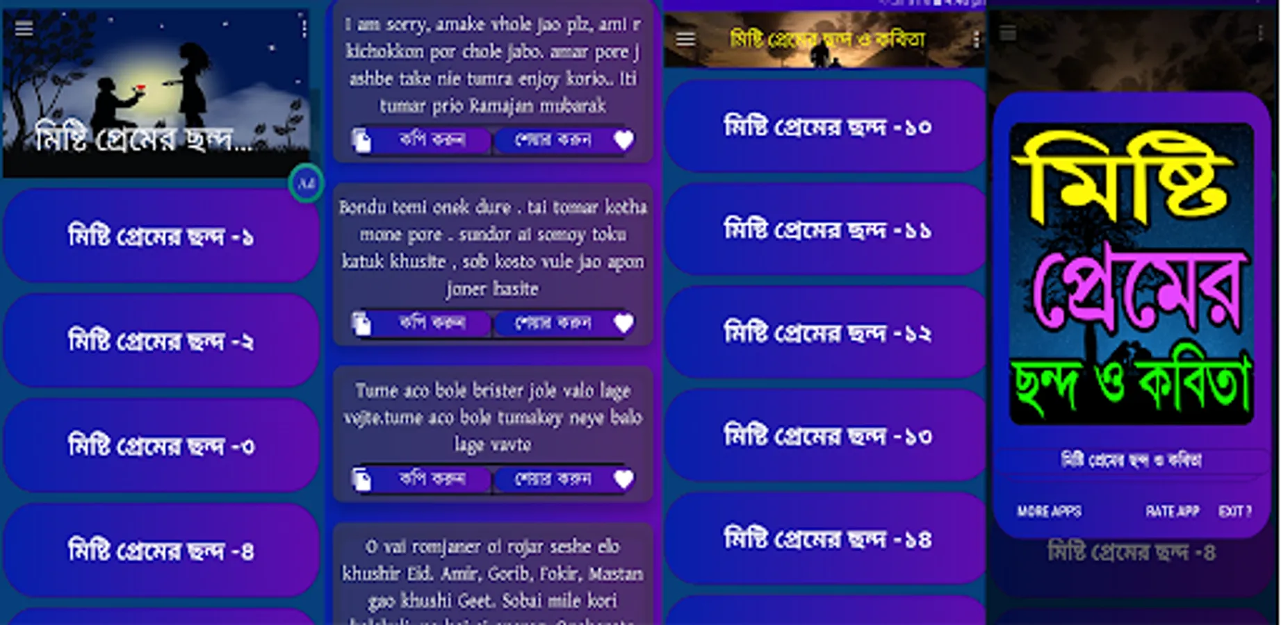 এই এ্যাপটিতে আপনার পছন্দের সব ধরনের মিষ্টি প্রেমের ছন্দ ও কবিতা রয়েছে। 👉👉👉👉👉