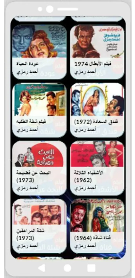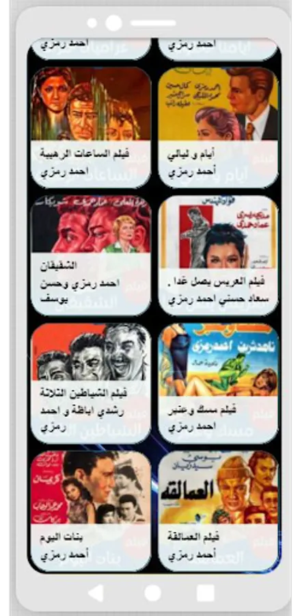 It is a free movie program that includes Ahmed Ramzy films, which are Egyptian films, classified under comedy films. Movies, because this application is like free movie programs in which you will find movies online. If you are a fan of watching adventure movies, romantic movies, and comedy movies, this application also shows you a list of Egyptian movies. Mohamed Saad Al-Lambi, Mohamed Henedy films, Ismail Yassin films, Hani Ramzy films and other applications of the latest Arab films.