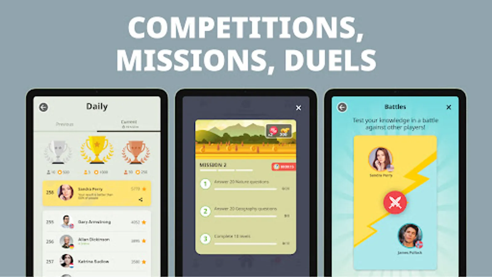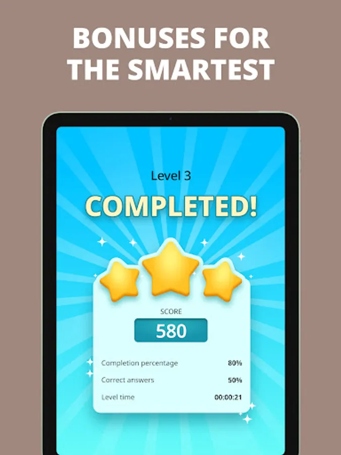 Each quiz contains 10 tricky riddles. To unlock the next level you need to answer correctly 6 riddles. Answers are displayed after each question is answered. There are a total of 40 tricky levels to unlock.
