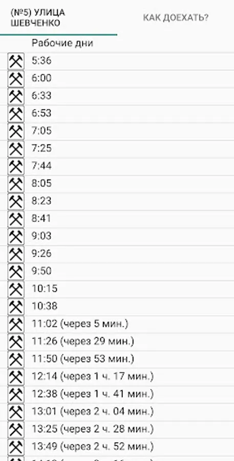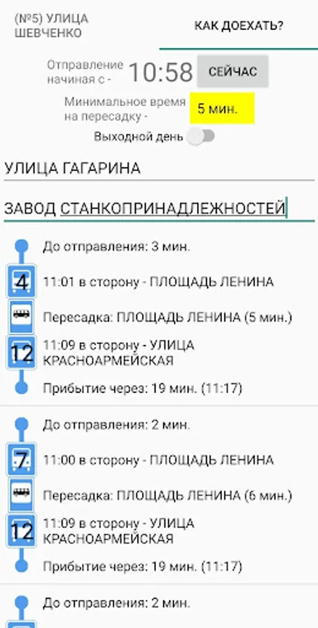 2. The function of calculating the route allows you to calculate the route taking into account the specified time for a transfer (by the names of the starting and destination stops).