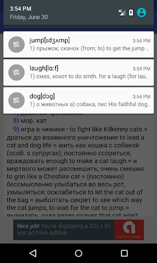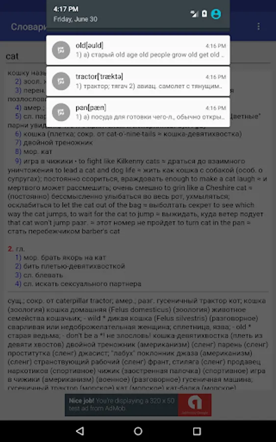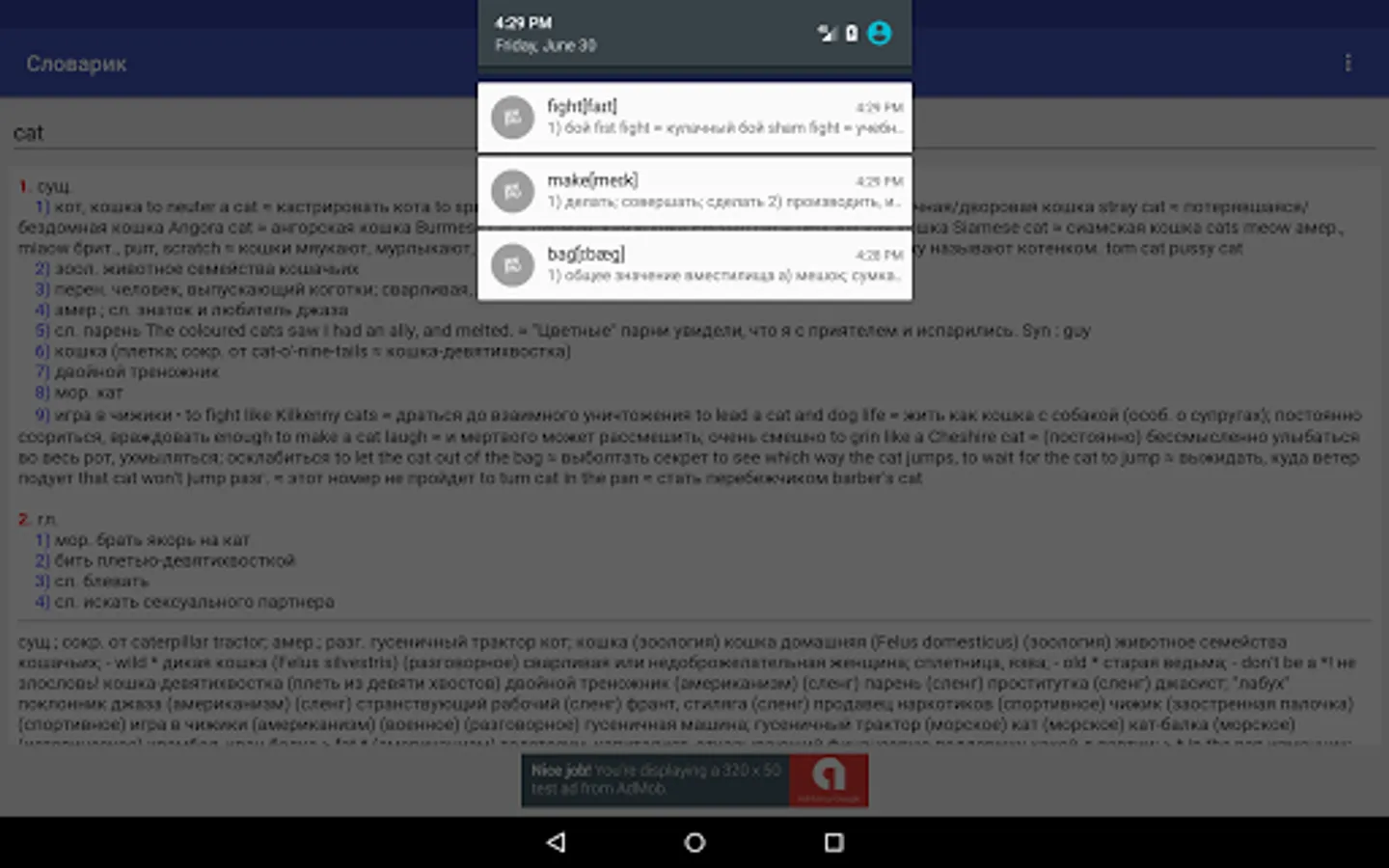 Offline English-Russian dictionary with more words. Also it needs to 5 words from the clipboard (clipboard).