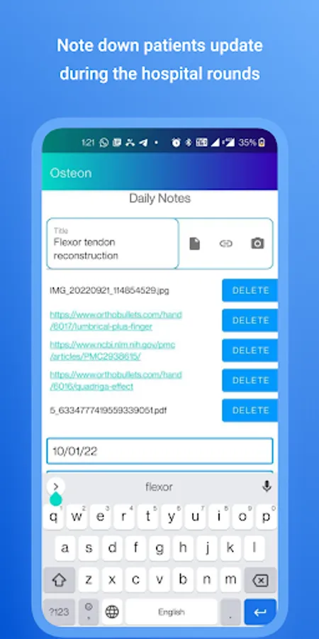 App provides you platform to gather all the possible data qith respect to patient management interms of clinical work up, Academics, Schedule the events.