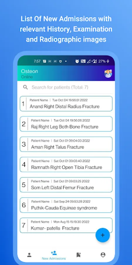 Complete details of patient's history, clinical examination, radiographic images to provide a clear status of patient in casualty to the users