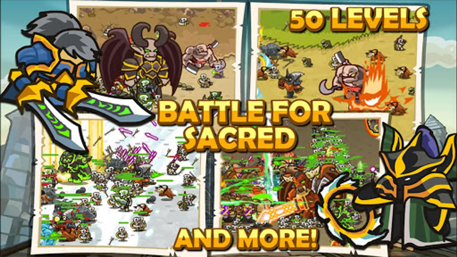 In the game, there are 3 big races, 10 types of armies, 12 heroes, 15 kind of manual skills and 573 auto skills. Players can organize their favorite tactics to response the attack from hundreds of different monster groups.