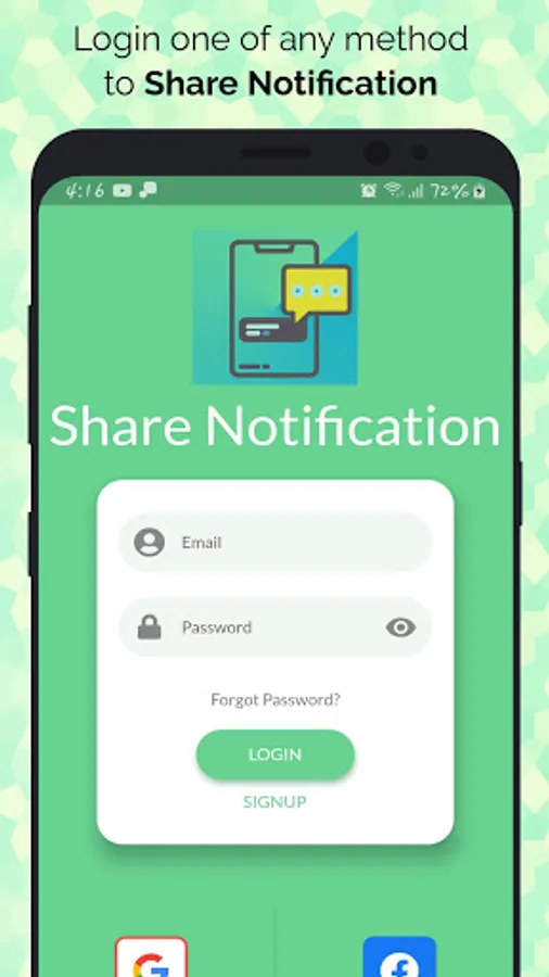 ✪First of all, you have to login with any methods Google, Facebook or Email Password.(Note: You have to login with the same account in other(victim or members) device to monitor or share notifications.Example- if you are login with shinewanna@gmail.com account in your phone, you have to also login with shinewanna@gmail.com account in victim account to monitor or share notifications)