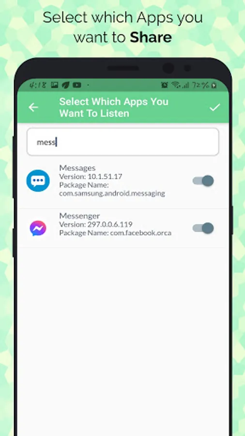 ✪Then, Choose which apps you want to listen or monitor in victim device.If you would like to only monitor, you can skip the step in your device.You don't have to worry about the step, you can select again in "Setting".