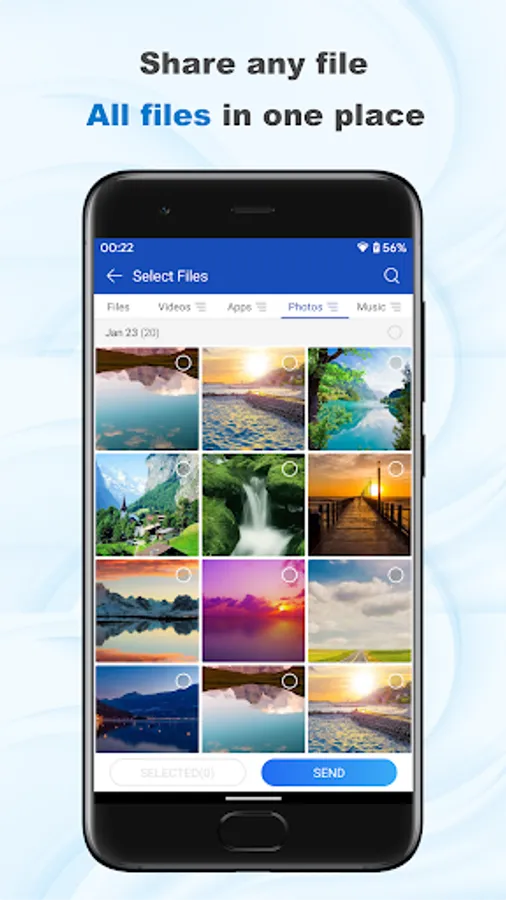 Movies, Photos, Videos, Music, installed apps, apks, folders and any other files
