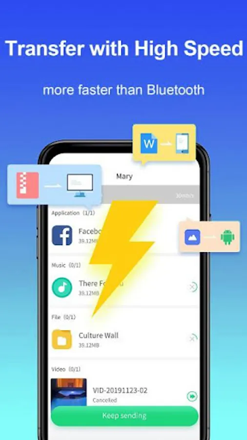 - Easy resume interrupted transfer, you can continue to share it without starting over