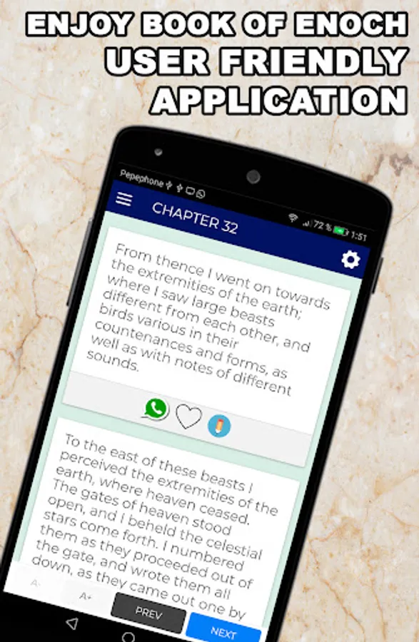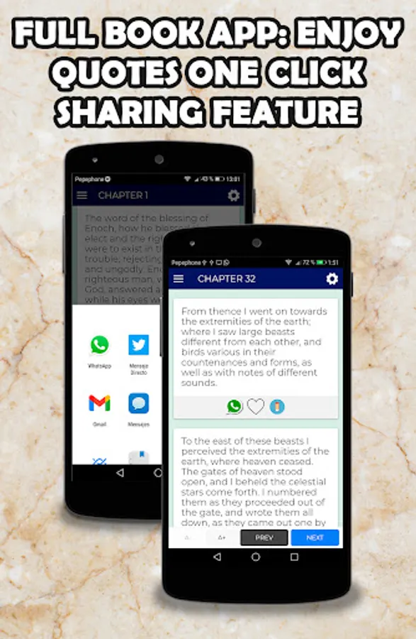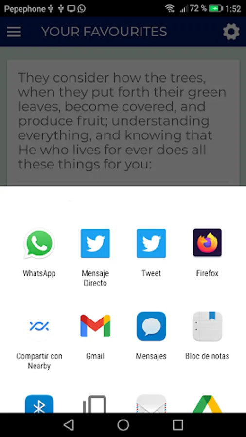 Use the one click sharing feature in order to share verses and quotes easily. Click of sharing button and select sharing application. Choose between social media apps or messenger tools installed on your device to share them with your family and friends.
