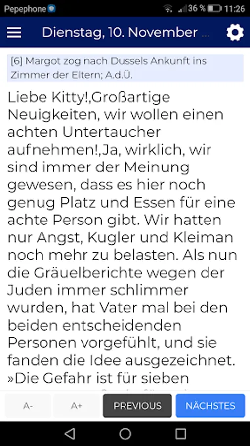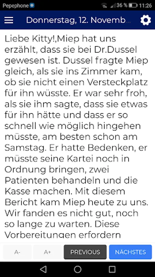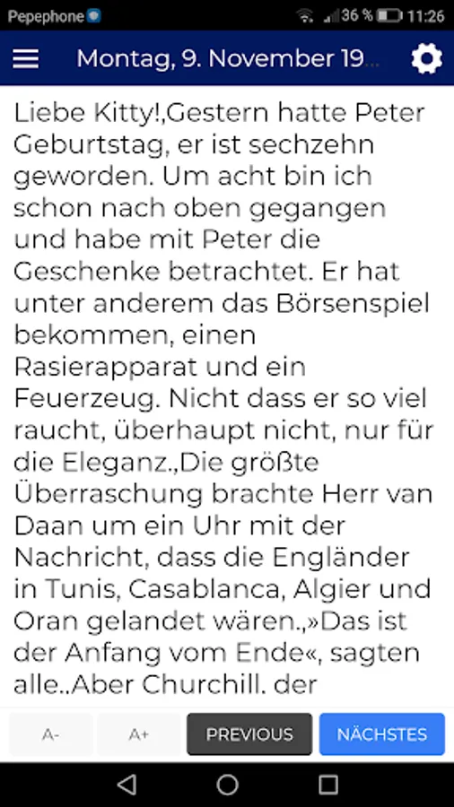 ✨ Easily access any chapter of Anne Frank's book.