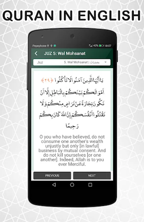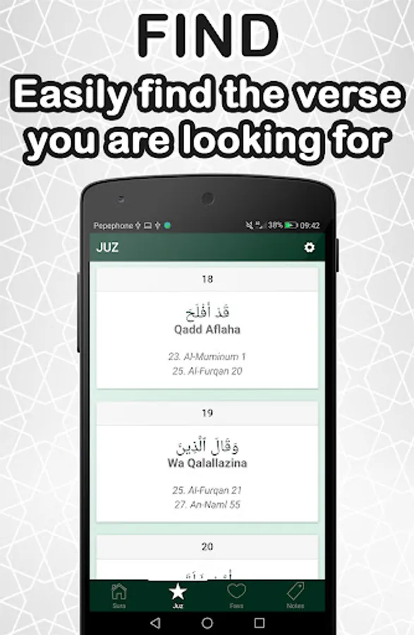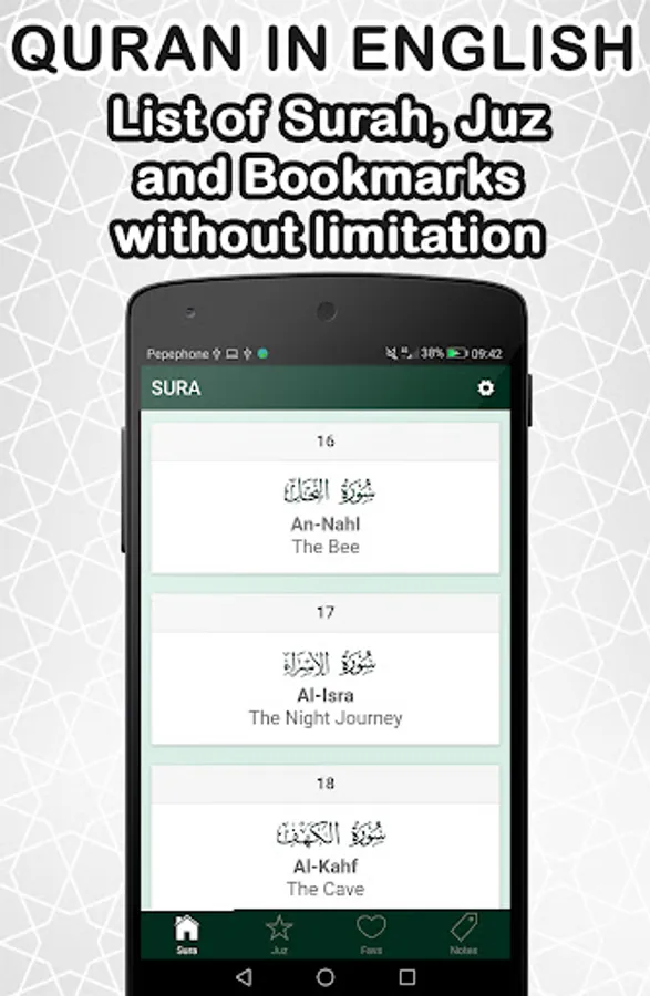 We have developed this tool so that anyone interested in the sacred book of ismal can download it and enjoy it from your Android device. The content is 100% translated into English. Different functionalities and utilities are offered to facilitate navigation and reading of the Quran.