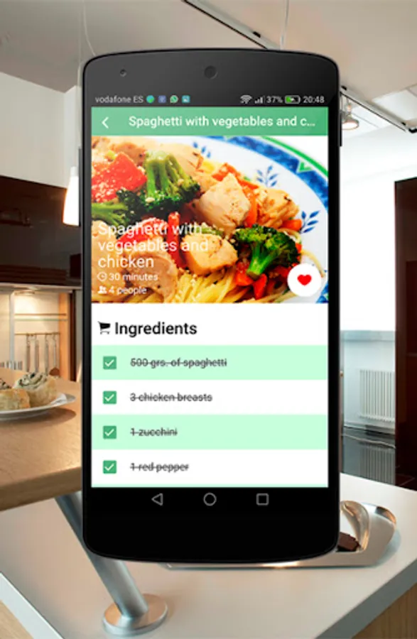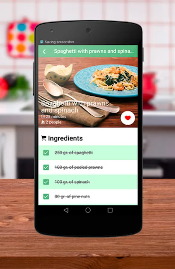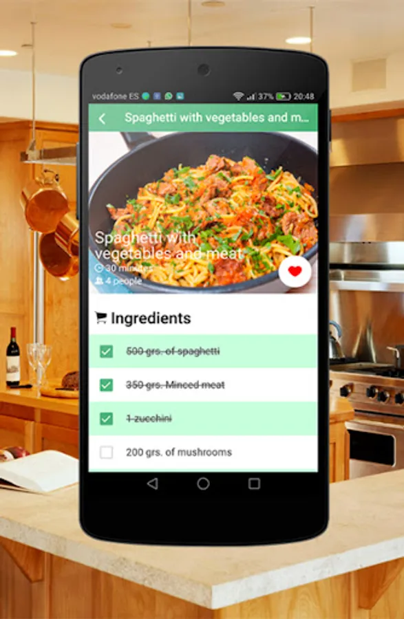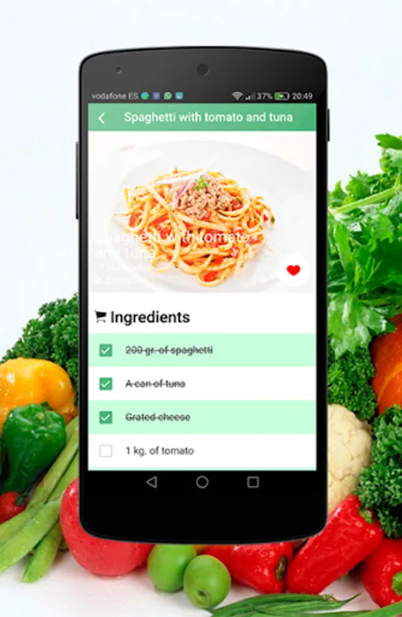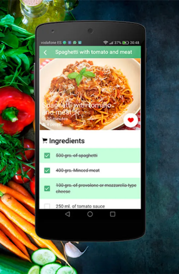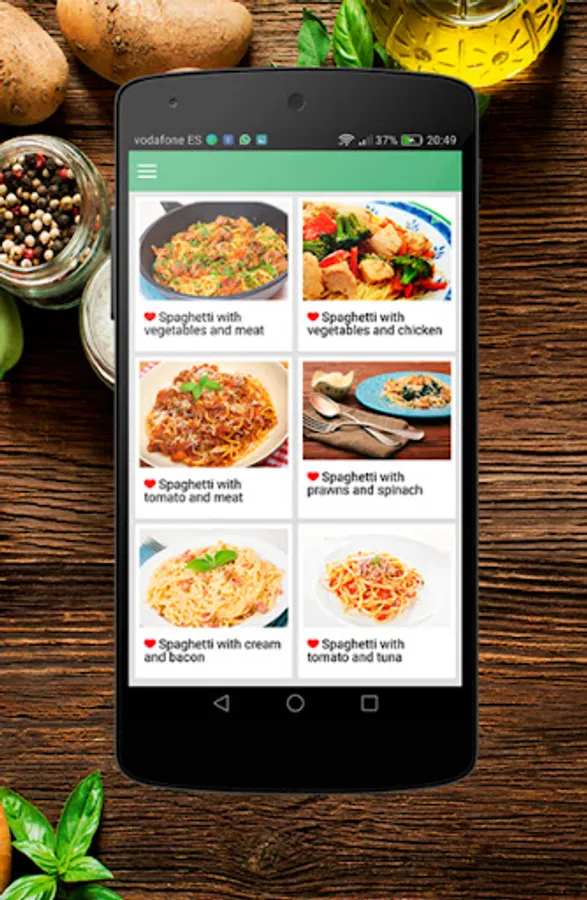 You have available more than 40 elaborations of spaghetti, including process of elaboration, list of ingredients, high definition imagess etc. A list of favorite recipes is offered so you can keep the recipes that you most like and get access to them in a few clicks.
