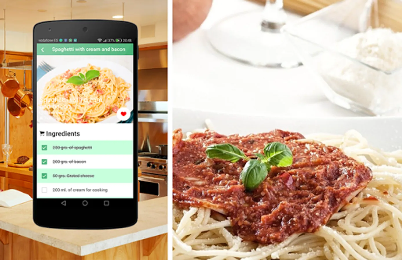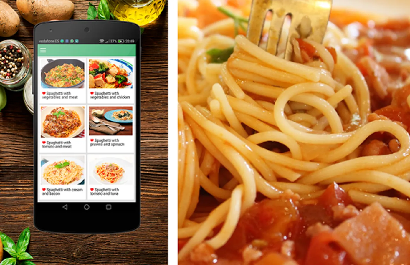 In this application we show you more than 40 recipes of this tasty dish. Thanks to these recipes you could cook the spaghetti in a simple way and step by step. Enjoy all the flavors and do not miss any of the great recipes that we offer you for free!
