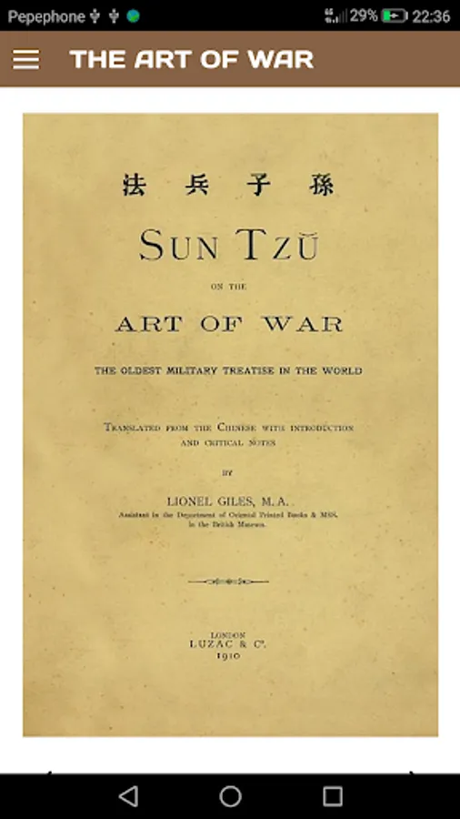 This work consists of thirteen chapters, each dedicated to an aspect of warfare and how it applies to military strategy and tactics. You can enjoy this book completely free on your Android device.