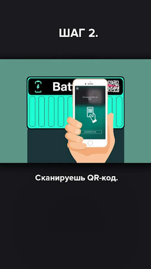 Скачай мобильное приложение и обеспечь свой телефон зарядкой навсегда! После быстрой регистрации ты получишь доступ ко всем аккумуляторам в нашей сети, просто отсканируй QR код и PowerBank твой!