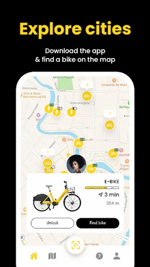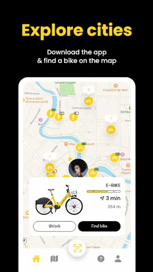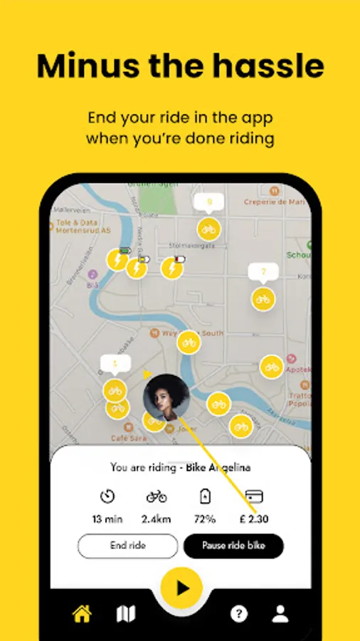 Download the app, then create and authorise your account in seconds by confirming your phone number and/or email. Select your town/city, pick a ride plan (pay as you go, or pay monthly), add a payment method, scan the QR code on the eBike, and you are ready to start your ride. You’ll find the nearest available eBike on the map or your personal dashboard. The dashboard also includes a weather forecast, your personal trip counter, and more...