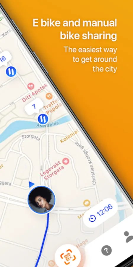 Rent a bike by scanning the QR code on the lock or on the charging station. The cost of
