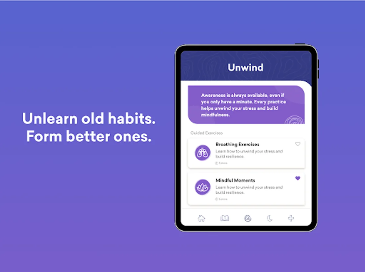With science-based practices and tools, you can be calmer, more aware, more in your body and mind, and most importantly, more focused on the things that matter most to you right now. Unwinding is a powerful mental health digital therapeutic that helps you stay grounded and gives you the support you need with tools at your fingertips when moments of stress arise —right when you need to take a breath and tap back into your curiosity.