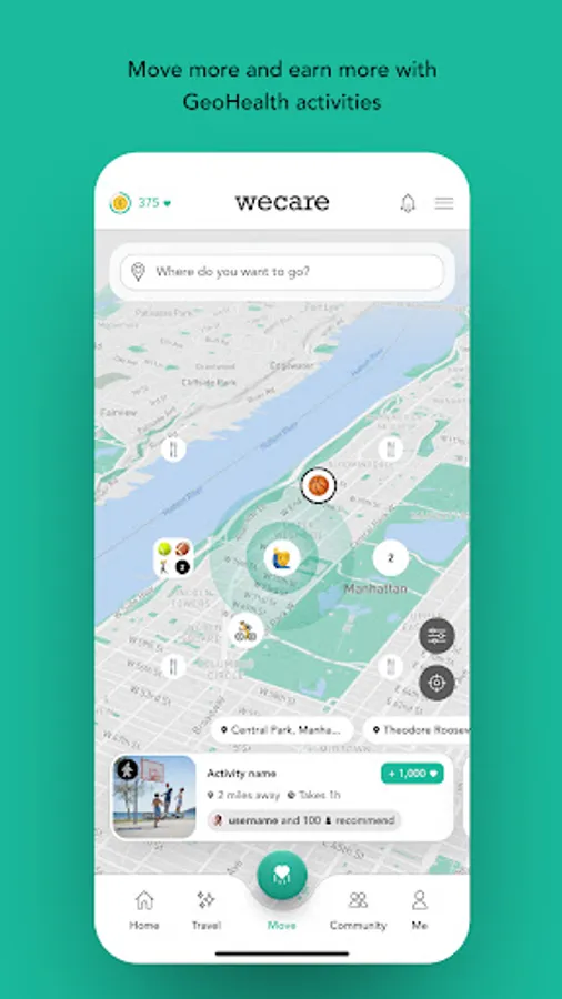 Your team members can earn more points on WeCare by making healthy choices or doing GeoHealth activities. Over 400k activities are available across the US including walking, running, cycling and hiking trails. Sharecare’s Community Well-Being Index (CWBI) powers WeCare’s AI to recommend activities. WeCare also recommends restaurants and cafe’s in any city around the world so that you can find healthy options wherever you are. Over 200k restaurants and cafes are recommended, not including fast-food restaurants. Finally, thousands of hotels and restaurants in WeCare are already Sharecare VERIFIED with Forbes Travel Guide so that you can dine and travel with confidence.
