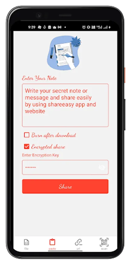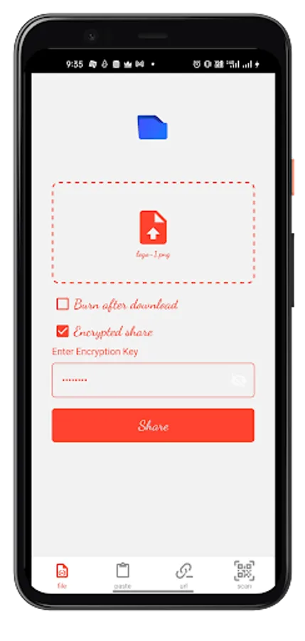 ShareEasy app generate a short link with QR code. You can scan QR to get your file or message. if you don't able to scan then you can use short link.