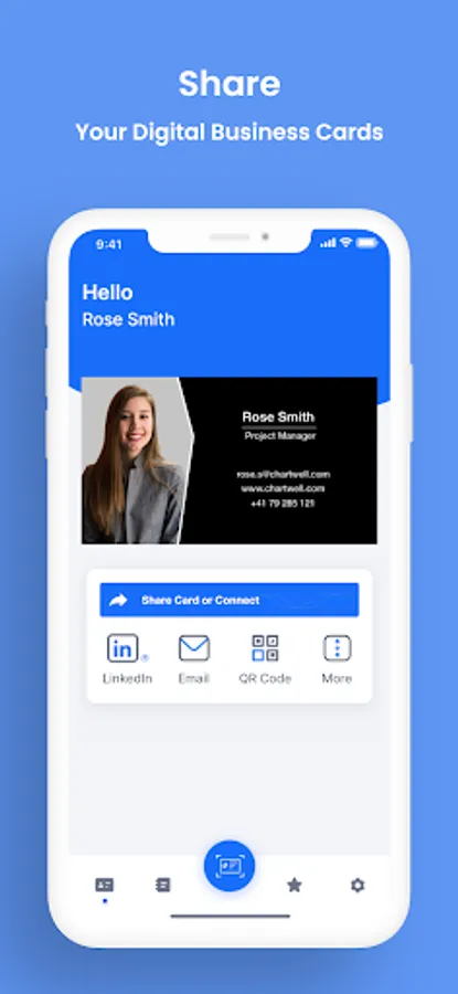 * Recipients can view and save your digital business card without installing the app.