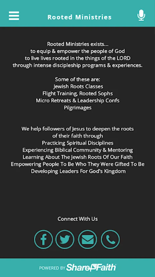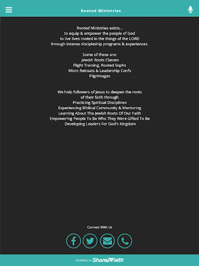 Rooted Ministries exists to equip & empower the people of God to live lives rooted in the things of the LORD through intense discipleship programs & experiences, such as Jewish Roots Classes, Flight Training, Rooted Sophs, Micro Retreats, Pilgrimages, and Leadership Conf/Training. We help followers of Jesus to deepen the roots of their faith through practicing spiritual disciplines, experiencing Biblical community, mentoring, learning about the Jewish roots of our faith & empowering people to be more effective leaders for God's Kingdom.