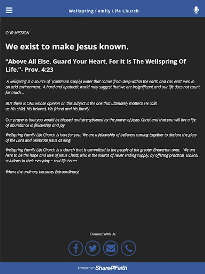 Wellspring Family Life Church is a church that is committed to the people of the greater Brewerton area. We are here to be the hope and love of Jesus Christ, who is the source of never ending supply, by offering practical, Biblical solutions to their everyday ~ real life issues.