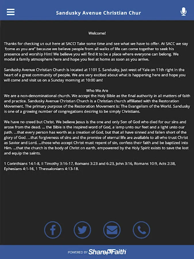 The official Sandusky Ave. Christian Church App helps connect you to a variety or resources including sermons, event information, student and children's activities, ministries and much more. Also provides directions to our location.