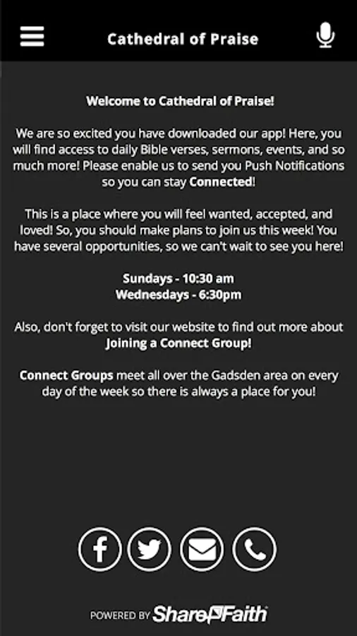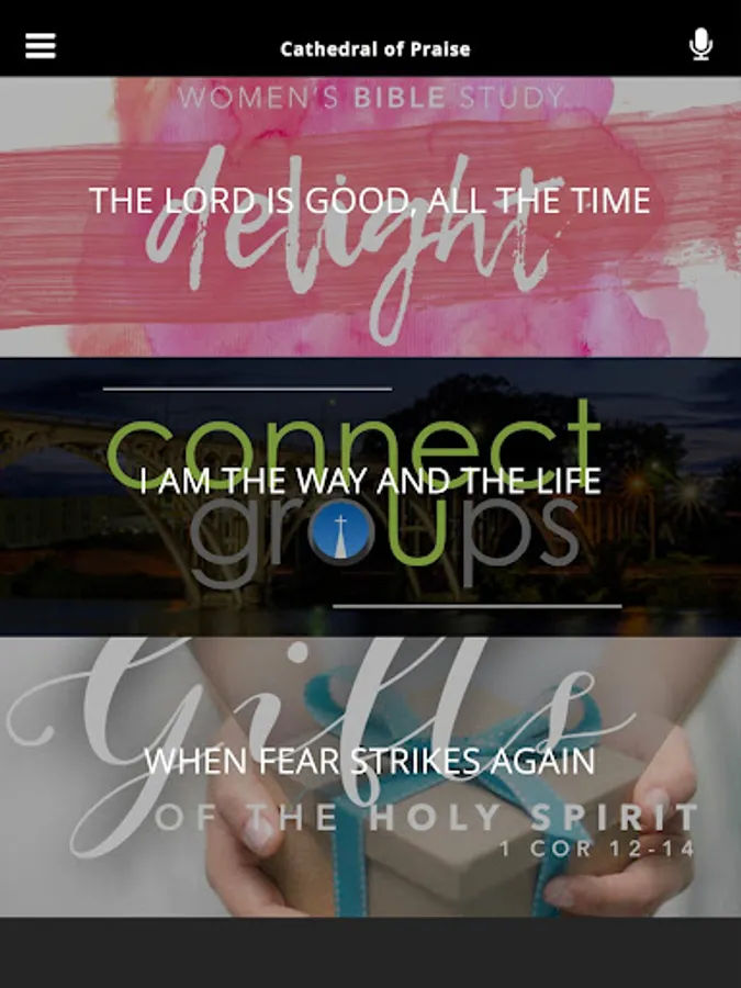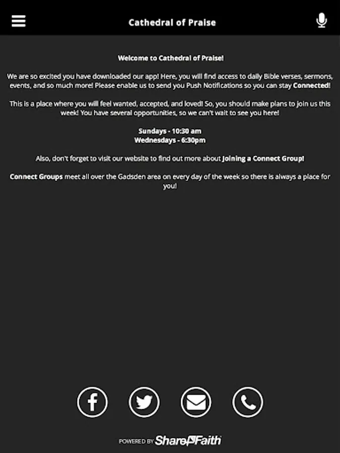 Download the official Cathedral of Praise app to stay up to date on all that's happening around Gadsden, new sermon series, daily bible readings, and more!