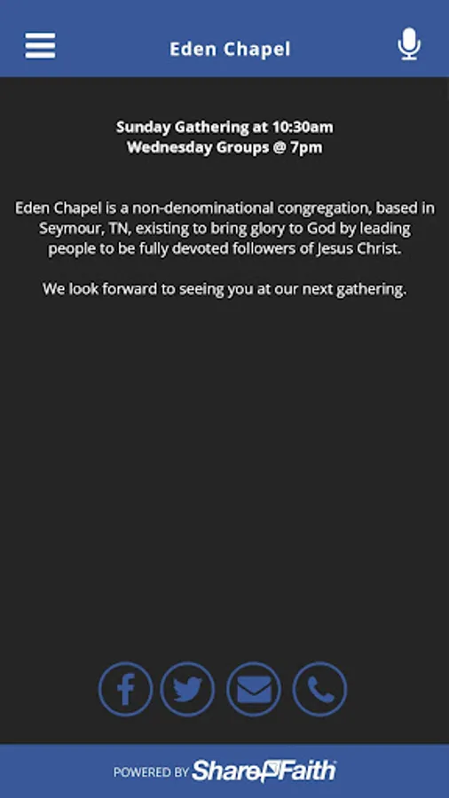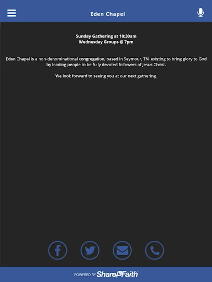 Eden Chapel is a non-denominational congregation, based in Seymour, TN, being led by God's word to make disciples and love others for the glory of Jesus Christ.