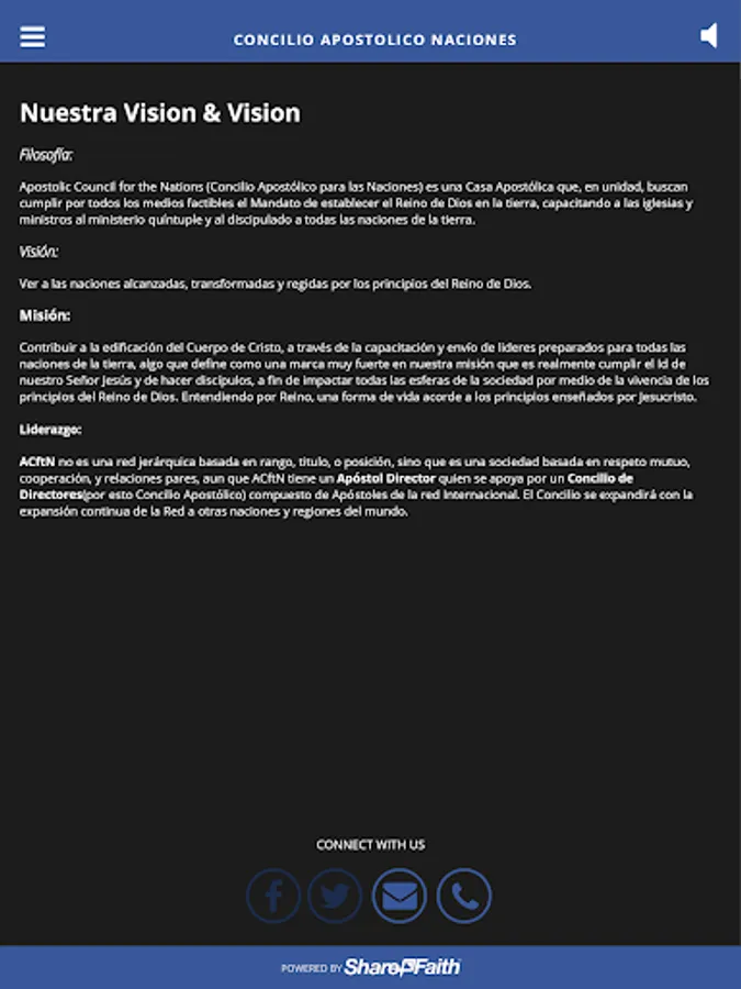 Apostolic Council for the Nations "An Apostolic House of Ministries and Ministers". (Concilio Apostólico para las Naciones) es una Casa Apostólica para Ministros y Ministerios.