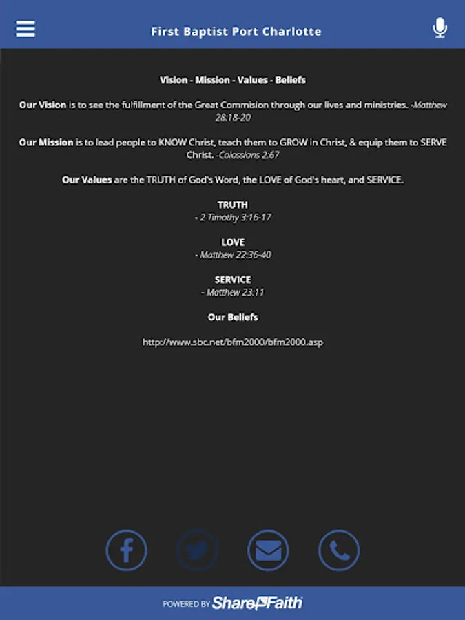 Official App for First Baptist Port Charlotte. Join us on Sundays at 8:00am, 9:30am or 11:30am. 20035 Quesada Avenue, Port Charlotte, Florida.