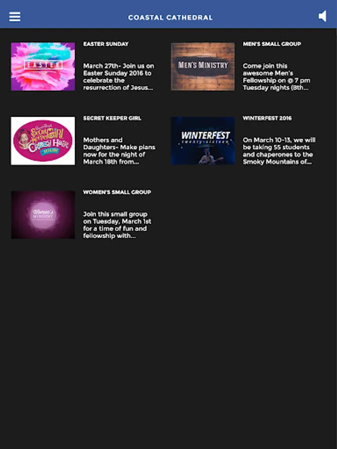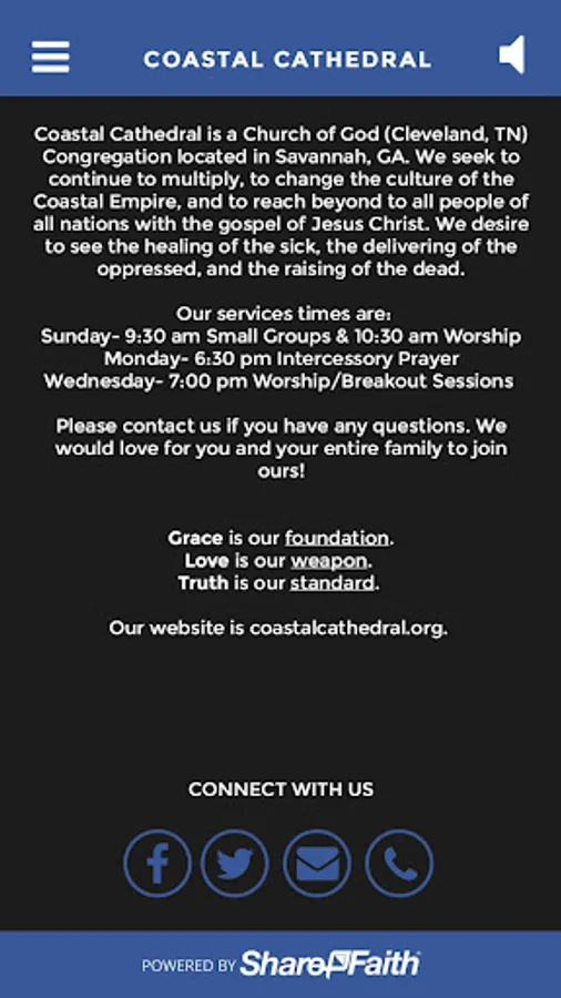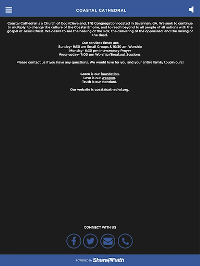 The Coastal Cathedral app is your convenient place to get to know everything about us. Contact us, watch sermons, and keep up to date with current and future events.