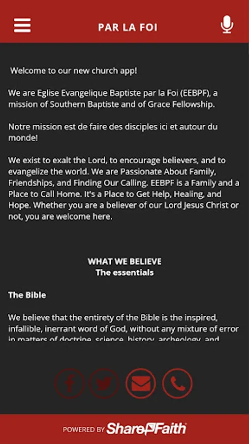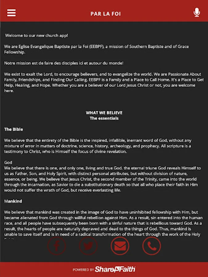 We are Eglise Evangelique Baptiste par la Foi (EEBPF), a mission of Southern Baptiste and of Grace Fellowship.