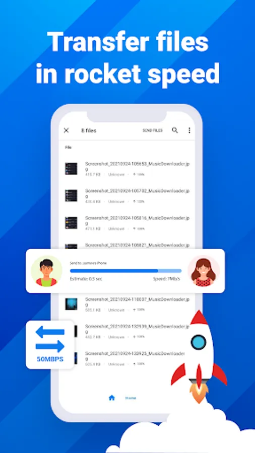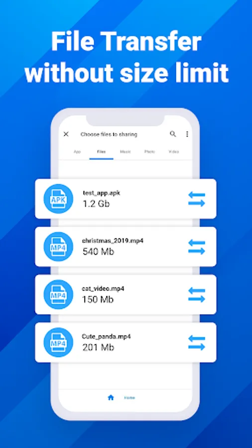 Whether you want to share photos, videos, apps, music, or files with your friends or other groups, gain extensive experience with Share File app. There is no need to have a wifi connection or create accounts for the nearby share.